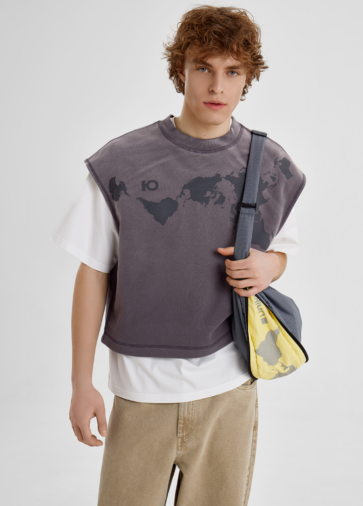 В Common Space мы обратились к собственному коду. Кириллический логотип, ставший визитной карточкой бренда, и буква «Ю» — не просто графический элемент, а полноценный символ и формообразующий мотив. Мы начали работать с лекалами не только как с техническими выкройками, но и как с инструментом создания абстрактной графики. Линии, срезы, соединения тканей превратились в образы: так на одежде появляются очертания континентов и картографические мотивы.